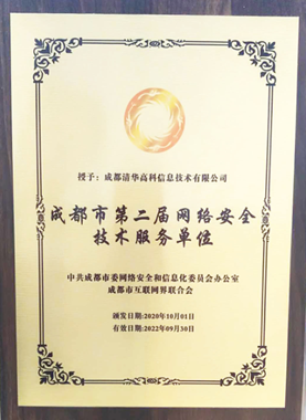 近日,成都市委网信办授予清华高科第二届网络安全技术服务单位称号。